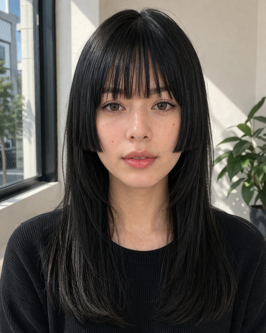 Front profile of Hime Cut showing silhouette and fringe structure.